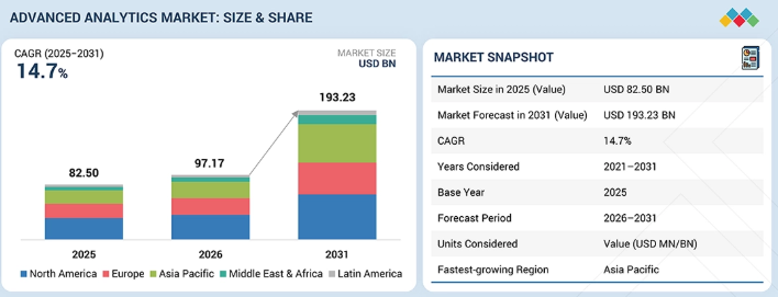 高度なアナリティクス市場は、2026年の971億7,000万米ドルから2031年までに1,932億3,000万米ドルへ成長し、予測期間中の年平均成長率(CAGR)は14.7%に達すると見込まれています。この拡大は、企業全体でのデータ活用の広がりと、アナリティクスに基づく意思決定の着実な増加を反映しています。アナリティクスはもはや単なる報告ツールとして扱われることはありません。多くの組織において、アナリティクスは運用チームに近づきつつあります。価格設定、リスク管理、サプライチェーンに関する意思決定は、アナリティクスの出力結果にますます依存しています。クラウドプラットフォームと大規模データセットへの容易なアクセスにより、この移行は以前よりも現実的なものとなりました。