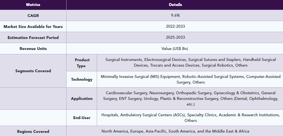 世界の先進外科用機器市場規模/シェア/動向分析レポート:製品種類別、技術別、用途別、エンドユーザー別(~2033年)