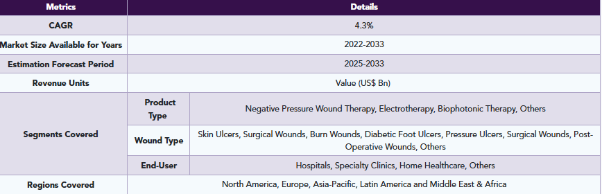 先進的創傷ケア機器の世界市場規模は2033年までにCAGR 4.3%で拡大する見通し