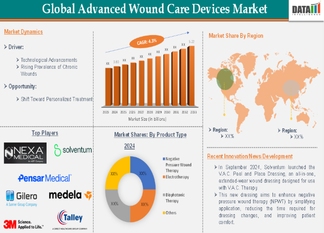 先進的創傷ケア機器市場における主要なグローバル企業には、Smith+Nephew、Gilero、Pensar Medical、Nexa Medical Limited、Solventum、Medela、Alleva Medical Ltd.、3M、Talley Group Ltd、DeRoyal Industries, Inc.などが挙げられます。