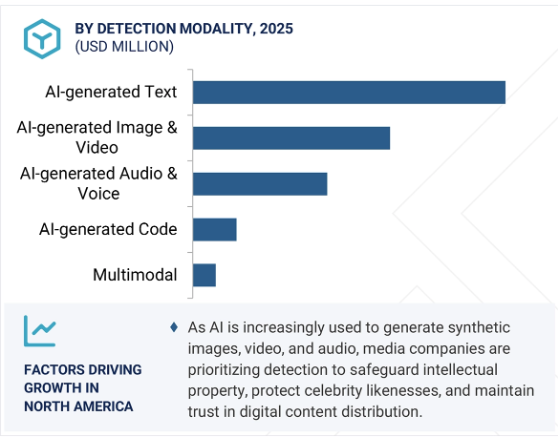 検出モダリティの観点では、AI生成音声セグメントが予測期間中に最も高い成長率を記録する見込みです。