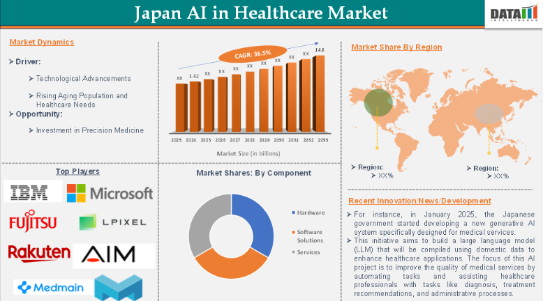 さらに、業界の主要企業は、日本のヘルスケアにおけるAI市場の成長を促進する革新的な発売を開始する必要があります。例えば、2024年11月、日本は次世代薬剤設計、ヘルスケアロボット、デジタルヘルスプラットフォームに焦点を当て、ヘルスケア技術で急速に進歩しています。AIを活用することで、高齢化や医療従事者の不足といったさまざまな課題に取り組むとともに、医療の質の向上を目指しています。