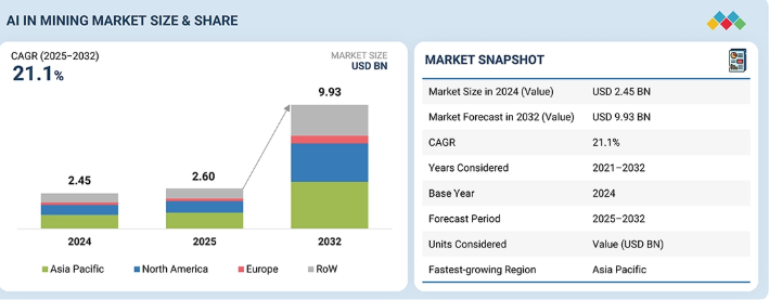 世界の鉱業向けAI市場は、2025年の26億米ドルから2032年までに99億3000万米ドルへ成長し、年平均成長率(CAGR)21.1%を記録すると予測されている。この市場は、露天掘りと坑内掘りの両鉱業オペレーションにおける自律搬送システムの導入拡大、予知保全分析、鉱石品位最適化、AIを活用した鉱山計画によって牽引されている。コンピュータビジョン、リアルタイムセンサーインテリジェンス、デジタルツイン、機械学習の統合により、作業員の安全性が向上し、生産効率が改善され、操業停止時間が削減される。さらに、厳格化するESG規制、持続可能性を重視したプロセス最適化、スマート・自動化鉱業を支援する国家プログラムが、AIプラットフォームの導入を加速させている。