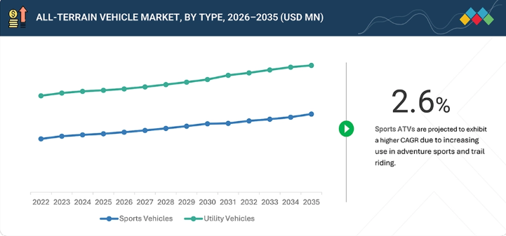 かつて、全地形対応車(ATV)市場の収益は、レクリエーションや、農業、狩猟、トレイルライディングなどの基本的な実用作業に使用されるガソリンエンジン搭載モデルによって主に牽引されていました。メーカーは主に、エンジンの性能、耐久性、およびオフロード性能の向上に注力してきました。しかし、新技術の登場に伴い、市場は徐々に電気式およびハイブリッド式ATV、コネクテッドカー機能、そして先進的なサスペンションおよびパワートレインシステムへと移行しつつあります。こうした動向により、ATVの役割は従来のレクリエーションを超えて、土地管理、農業モニタリング、フリートベースの屋外作業などの用途へと拡大しており、これが市場の将来の収益構成に影響を与えると予想されます。