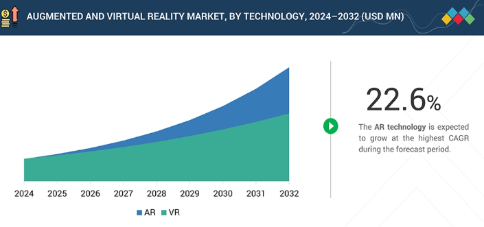 予測期間中、ARヘッドマウントディスプレイ(HMD)とVRジェスチャー追跡デバイスがAR・VR市場で最も高いCAGR(年平均成長率)を記録すると見込まれる。