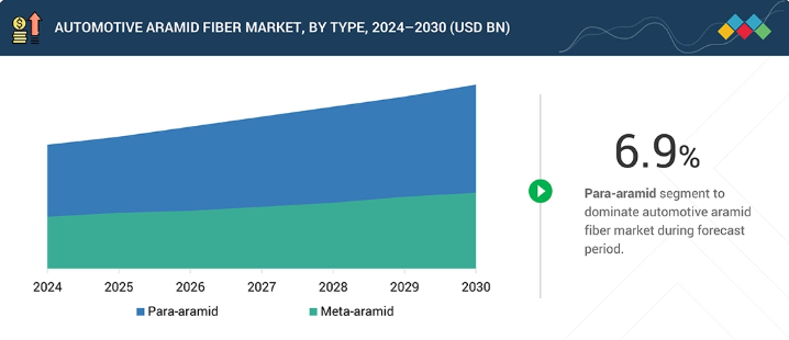 種類別ではパラアラミドが2025年から2030年にかけて年率6.9%で成長し、自動車用アラミド繊維市場で最も高い成長率を示す見込み。