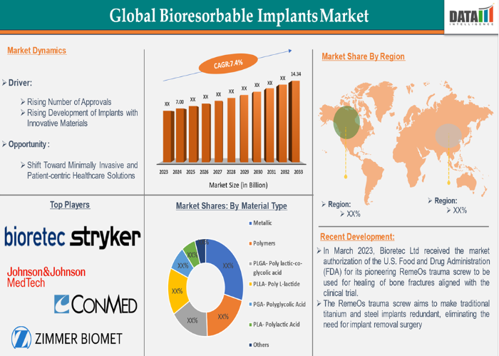 生体吸収性インプラント市場における世界的な主要企業としては、Bioretec Ltd、Stryker Corporation、CONMED Corporation、Syntellix AG、Johnson & Johnson Medical Devices (DePuy Synthes)、Zimmer Biomet、NuVasive Inc.、KLS Martin Group、Smith+Nephew、Evonik Industries AG などがあります。