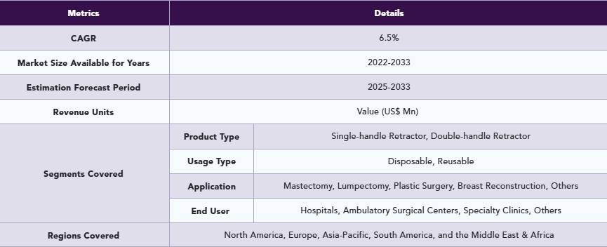 世界の乳房手術用レトラクター市場は、製品タイプ、使用タイプ、用途、エンドユーザー、地域に基づいてセグメント化されている。