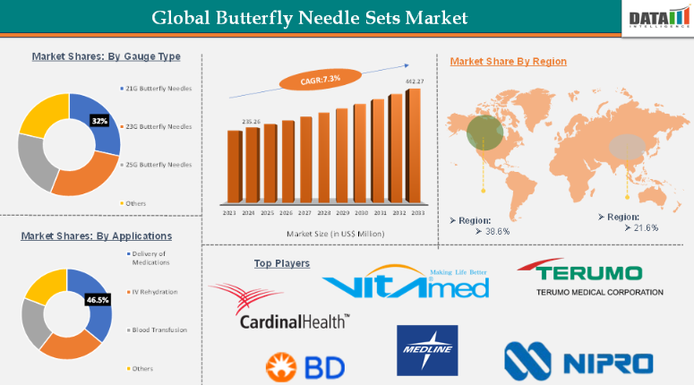 世界のバタフライ針セット市場規模/シェア/動向分析レポート:ゲージ種類別、用途別、エンドユーザー別、地域別(~2033年)