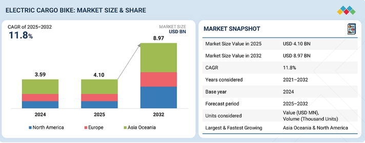 貨物用電動自転車の市場規模は、2025年の41億米ドルから2032年までに89億7,000万米ドルへと拡大し、年平均成長率(CAGR)は11.8%になると予想されています。この成長は、都市物流の変化やゼロエミッション配送の義務化によって牽引されています。貨物用電動自転車はラストマイルのコストを削減し、渋滞料金の回避に寄与するとともに、欧州や北米における低排出ガス区域(LEZ)の規制を満たすことができるため、小包、食料品、食品の配送会社における導入が加速しています。最新のモデルは、高トルクのミッドドライブモーター(80~120 Nm)、デュアルバッテリーシステム(最大2 kWh)、および150~300 kgの積載量に対応する強化フレームを備えており、混雑した都市部のルートにおいてバンの代替として実用的な選択肢となっています。安全性とライフサイクルの利点からLFPバッテリーの使用が増加していることに加え、テレマティクスに基づくフリート管理により、拡張性の高い商用物流ソリューションとしての役割がさらに強化されています。