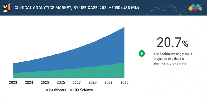臨床分析市場は、ヘルスケアおよびライフサイエンスのユースケースで構成される。2024年、臨床分析市場においてヘルスケア分野が大きなシェアを占めた。これは、患者の転帰改善、医療費削減、業務効率向上のためのデータ駆動型インサイトへの需要増加に牽引されたものである。医療提供者は、エビデンスに基づく意思決定の支援、ケアパスの最適化、予測的・予防的ケアの実現のために臨床分析を活用している。電子健康記録(EHR)の導入拡大、実世界データ(RWE)の統合、集団健康管理への注目の高まりが、病院・診療所・その他の医療現場における高度な分析ソリューションの必要性をさらに加速させている。加えて、規制圧力と価値に基づく医療イニシアチブが、医療機関に品質測定・リスク評価・患者エンゲージメント向上のための分析ツール導入を促し、同セグメントの市場での強い存在感を支えている。