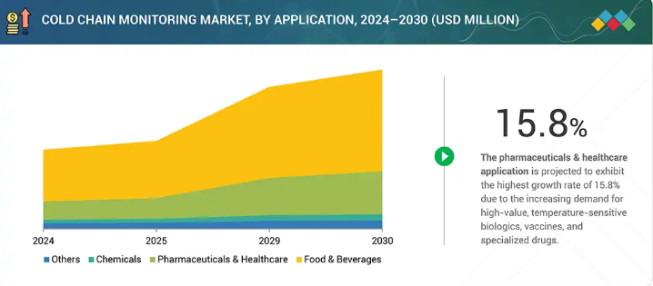 医薬品・ヘルスケア、食品・飲料、化学品など、多様な用途でコールドチェーン・モニタリング・ソリューションが採用され、市場の需要が加速すると予想されます。同時に、スマート工場、品質検査、食品加工などのニッチなユースケースは、ソリューションプロバイダーにとって新たなビジネスチャンスとなります。さらに、医薬品、化粧品、食品・飲料などの特殊産業は、医薬品・ヘルスケア、化学、食品・飲料の各分野で顧客支出の顕著なシフトが予想されることから、主要な収益ポケットになると予測されます。