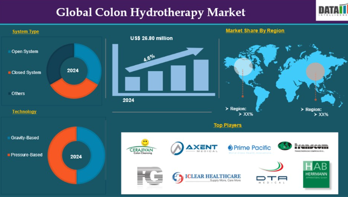 大腸水治療法市場における主要なグローバルプレイヤーには、Cerajivan Healthtech.、HERRMANN APPARATEBAU GMBH、Prime Pacific Health Innovations Corporation、DTA Medical、Axent Medical、Beijing FOGOOL S&T Co., Ltd.、iClear Limited、TRANSCOM S.L.などが含まれます。