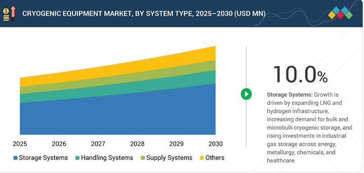 2030年までに、貯蔵システムは極低温機器市場の最大のシェアである57.8%を占めると見込まれる。