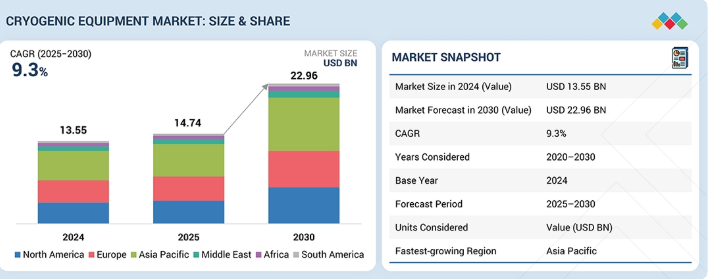 極低温機器市場は、2024年の135億5000万米ドルから2030年までに229億6000万米ドルに達すると予測されており、年平均成長率(CAGR)は9.3%となる見込みである。エネルギー・電力、冶金、電子機器、化学、輸送などの産業におけるこれらの産業用ガスの使用増加が、極低温装置の需要を牽引すると見込まれる。また、特にLNG、産業用ガス、医療、水素用途向けに、高効率で用途特化型の極低温システムの採用が増加していることも、市場成長を促進している。