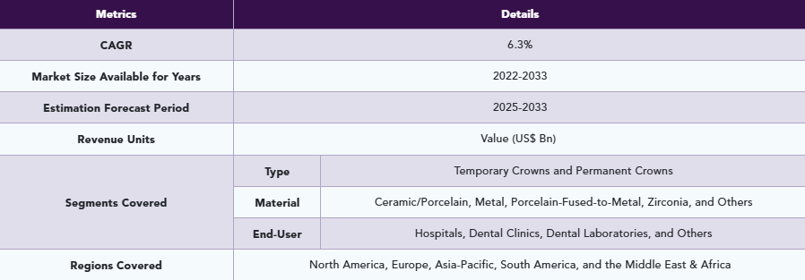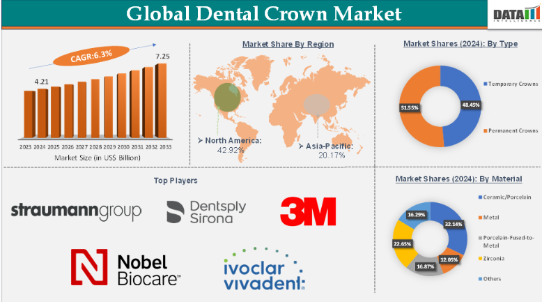 歯科用クラウンの世界市場規模は2033年までにCAGR 6.3%で拡大する見通し