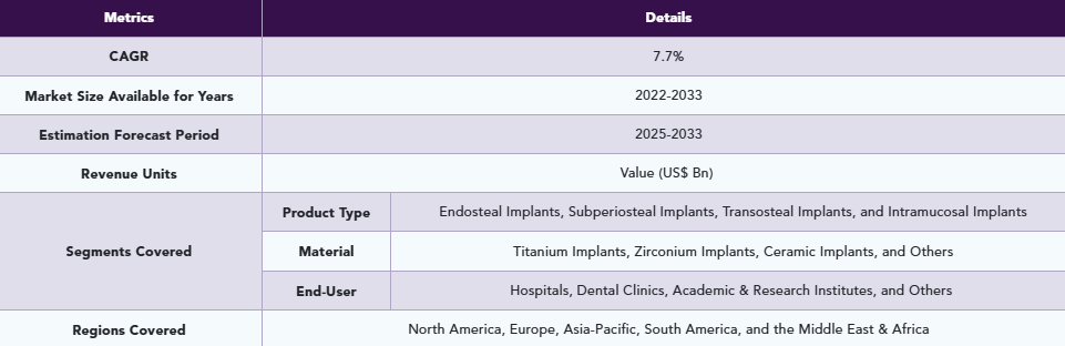 歯科インプラントの世界市場規模は2033年までにCAGR 7.7%で拡大する見通し