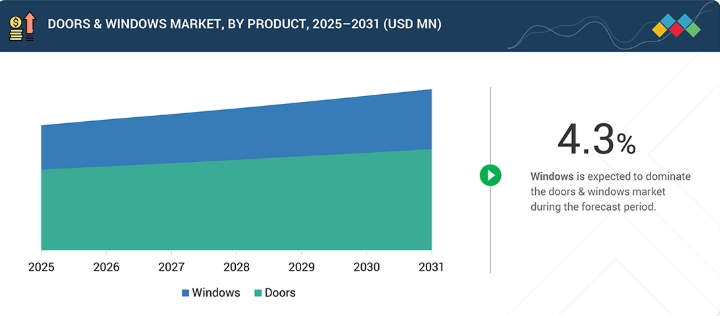 ドア・窓市場は、住宅、商業、および産業用建設からの需要増加により、着実に成長しています。都市部の人口が増加する中、住宅およびインフラ開発への投資により、ドアや窓の人気が高まっています。省エネで持続可能な建築物への関心の高まりが、断熱ガラス、高性能フレーム、気密性の高い設計の採用を後押ししています。さらに、美観、自然採光、換気を重視する現代の建築トレンドが、製品の革新を促進しています。政府の政策もドア・窓の需要拡大に寄与しており、近年ではインフラ開発の不可欠な要素となっています。