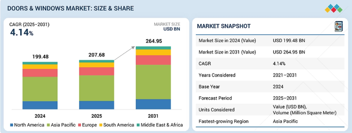 ドア&窓のグローバル市場規模は2025年に2,076億8,000万ドル、2031年までにCAGR 4.14%で拡大する見通し