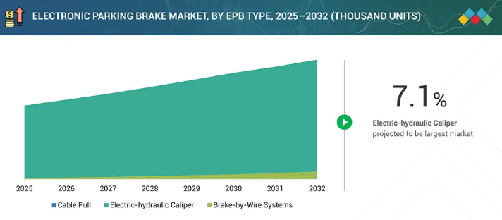 EPB市場の動向と混乱は、現在と将来の両方の展開を明らかにします。EPB市場は、厳しい世界的な安全規制によって大きな転換期を迎えており、業界は従来のケーブル・プル・システムからエレクトロニクス・ベースのシステムへと移行しています。今後の収益構成は、電気機械式ブレーキシステムや電気油圧式ブレーキシステムなど、より広範なブレーキ・バイ・ワイヤ技術の基盤となるEPBシステムがますます主導権を握るようになるでしょう。これらの技術革新は、ICEおよび電気乗用車、商用車、自律走行車などの主要セグメントで顧客のニーズに応えるために不可欠です。この変化は、進化する安全基準や新たな車両技術が従来の収益モデルを破壊し、EPB分野に新たなビジネスチャンスをもたらしていることを浮き彫りにしています。
