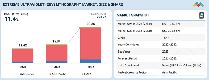 極端紫外線(EUV)リソグラフィー市場は、2026年の158億4000万米ドルから2032年には303億6000万米ドルへ、年平均成長率(CAGR)11.4%で成長すると予測されている。7nm、5nm、および将来の技術世代を含む最先端ファウンドリノードへの移行加速が、世界半導体産業におけるEUVリソグラフィ導入の核心的な推進要因である。従来の光学リソグラフィ手法は10nm以下の微細構造において解像度とパターン忠実度の根本的な限界に直面しているため、EUVリソグラフィはより微細な特徴、より狭いピッチ、そしてますます複雑化するデバイス構造を実現するために不可欠となっている。