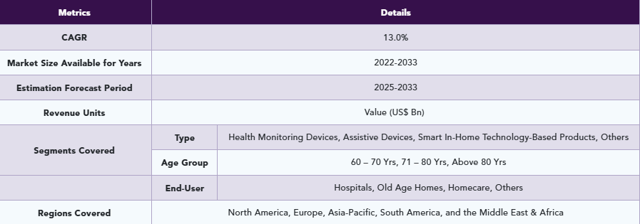 高齢者向け技術の世界市場規模は2033年までにCAGR 13.0%で拡大する見通し