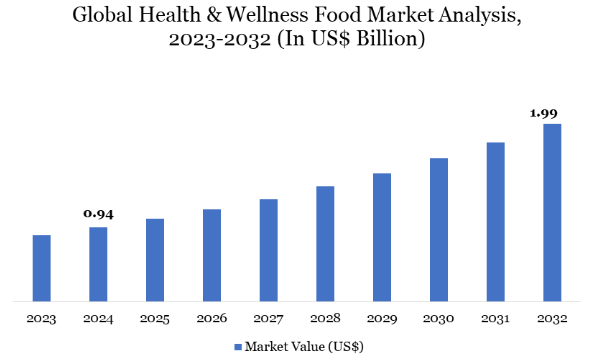 ヘルス&ウェルネス食品市場規模は、2024年には9億4,000万米ドルに達し、2032年には19億9,000万米ドルに達すると予測され、予測期間2025-2032年のCAGRは9.81%で成長する見込みです。