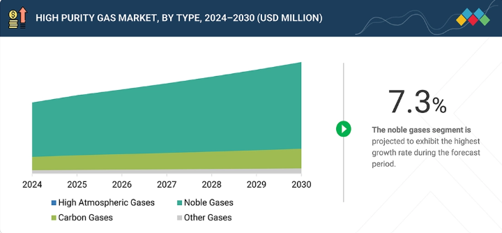 高純度ガス市場は、高気圧ガス、希ガス、炭素ガス、その他のガスで構成される。種類別では、半導体製造、エレクトロニクス、超高純度・不活性環境を必要とする特殊産業用途における重要性から、希ガスセグメントが予測期間中に最高のCAGRを記録すると見込まれる。