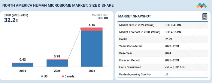 北米ヒトマイクロバイオーム市場は、2024年に4億3000万米ドルと評価され、2025年には7億8000万米ドルに達した。2025年から2031年にかけて32.2%という堅調なCAGRで成長し、期間終了時には41億5000万米ドルに達すると予測されている。北米ヒトマイクロバイオーム市場の成長は、業界プレイヤーと学術機関の連携による新規マイクロバイオームベース製品・治療ソリューションの改良が牽引している。米国とカナダの新興スタートアップ企業が、マイクロバイオーム治療薬と診断技術分野のイノベーションを推進中。