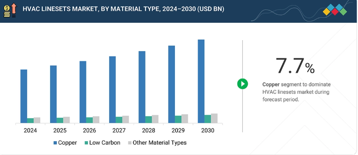 HVACラインセット市場におけるクライアントのビジネスへの影響は、エネルギー効率、持続可能性、設置速度、規制順守といった優先事項の変化によって左右される。サイモン・プロパティ・グループ、タタ・ハウジング、レナー・コーポレーションなどの主要企業は、エネルギー効率の高いシステム、耐久性と拡張性を備えたソリューション、テナントや購入者の満足度を優先している。これらの優先事項は、コスト削減、快適性の向上、資産価値の増加、規制順守など、いくつかの有益な結果をもたらす。これは、エンドユーザーの多様な要求に対応する上で、革新性と品質が果たす重要な役割を浮き彫りにしている。