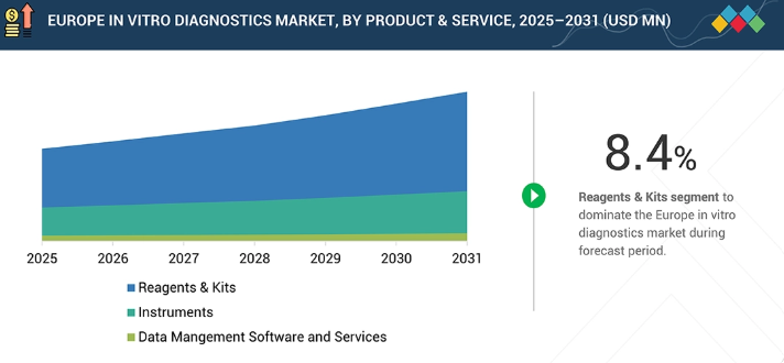 欧州の体外診断市場は、慢性疾患や感染症の負担の増大、定期的な診断モニタリングを必要とする高齢化の進展、および地域全体での予防医療の取り組みの拡大により、力強い成長を見せています。早期疾患発見への意識向上と定期健康診断プログラムへの参加率上昇が相まって、検査受診率が向上している。さらに、政府によるタイムリーな診断支援と個別化医療への需要拡大が、先進的なIVDソリューションの普及を促進している。これらの要因が診断検査量の持続的成長を牽引し、欧州市場の全体的な見通しを強化している。
