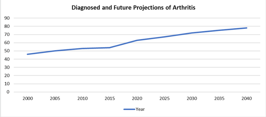 例えば、Bone and Joint Canadaによると、現在カナダには460万人以上の変形性関節症患者がおり、あと1世代(30年後)には1,000万人以上、つまり4人に1人に達すると予測されています。