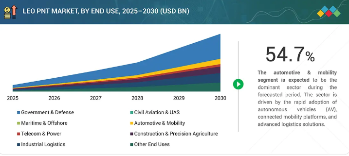 LEO PNTソリューションは、GNSSが困難な環境での運用効率と継続性のために、アンチジャミングの回復力、正確な低遅延ナビゲーション、信頼性の高い同期、精度の向上を提供し、エンドユーザの優先事項との整合性が高まっています。