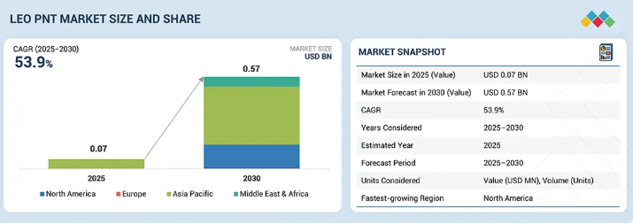 LEO PNTの世界市場規模は2030年までにCAGR 53.9%で拡大する見通し