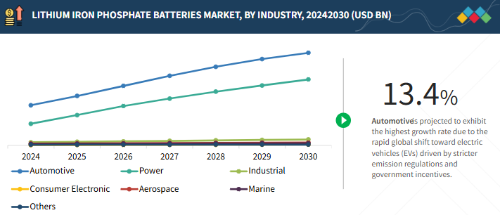 電力・産業セクターの近代化に伴い、大規模なリン酸鉄リチウム(LFP)電池システムを、グリッド管理、デマンドレスポンスプログラム、再生可能エネルギーのバランス調整ソリューションに統合する可能性が高まっています。エネルギー負荷を貯蔵・シフト・調整可能な電池システムは、電力系統の安定性向上、エネルギー消費の最適化、持続可能な電力供給の支援を通じて、より高い運用価値を提供します。