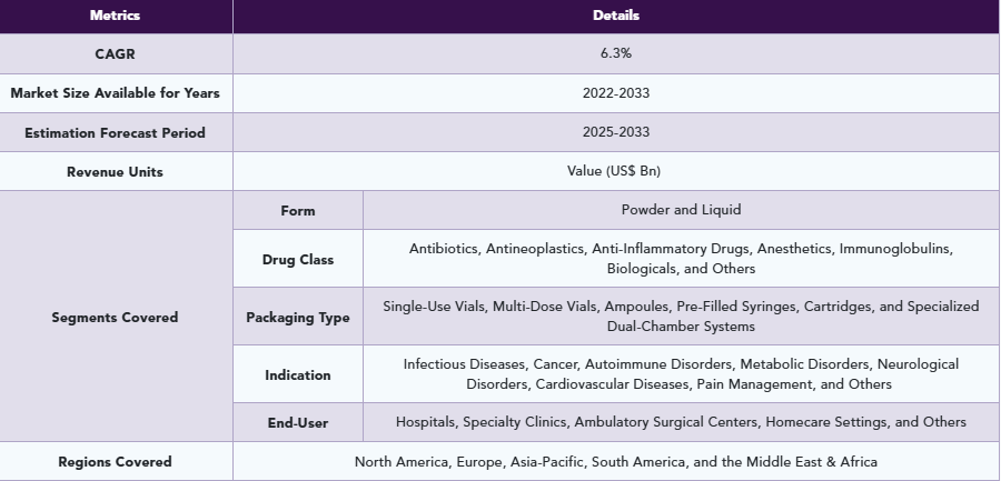 凍結乾燥注射剤の世界市場規模は2033年までにCAGR 6.3%で拡大する見通し