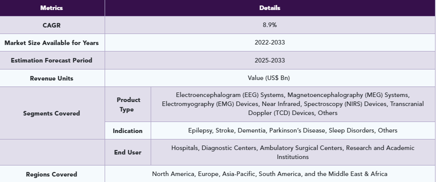 技術革新、神経疾患の増加、非侵襲的診断ソリューションへの需要拡大により、世界神経診断機器市場は成長を続けている。てんかん、パーキンソン病、アルツハイマー病、脳卒中、睡眠障害などの神経疾患の有病率が高まる中、正確かつ早期段階での診断ニーズが急増している。