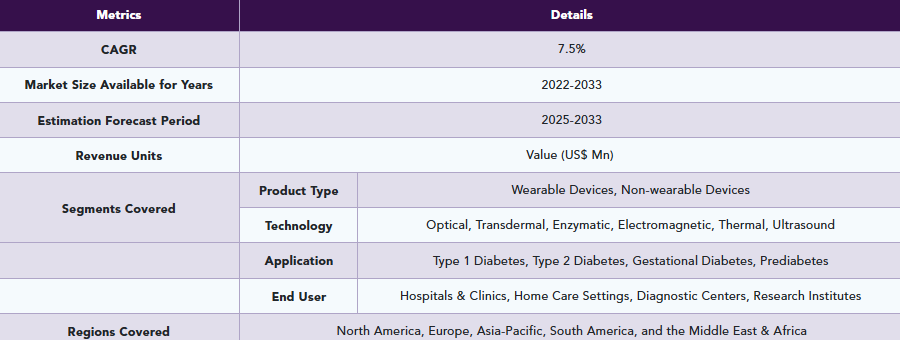 非侵襲的血糖モニタリング機器の世界市場規模は2033年までにCAGR 7.5%で拡大する見通し