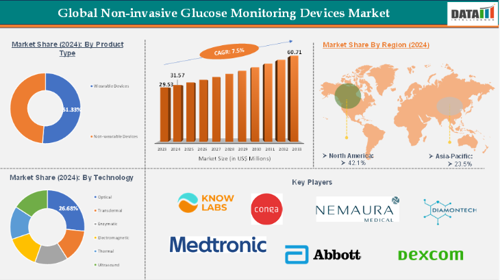 非侵襲的血糖モニタリングデバイス市場の主要企業には、Know Labs, Inc.、Conga Medical Ltd.、Nemaura Medical Inc.、DiaMonTech GmbH、Medtronic、Abbott Laboratories、Dexcom, Inc.、Afon Technology、Ascensia Diabetes Care、BlueSemiなどが挙げられます。