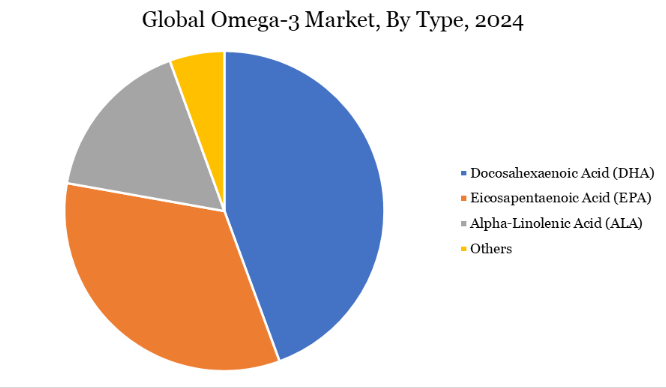 2024年には、DHAセグメントが世界のオメガ3市場で最大の割合を占めました。このセグメントの成長は、乳児の全体的な健康を向上させるために新生児用ミルクで製品の使用が増加しているためです。DHAは、人間の食生活において最も重要で豊富なオメガ3脂肪酸であり、体全体の健康に貢献します。DHAは、乳児の脳と視覚の発達と成熟に不可欠です。