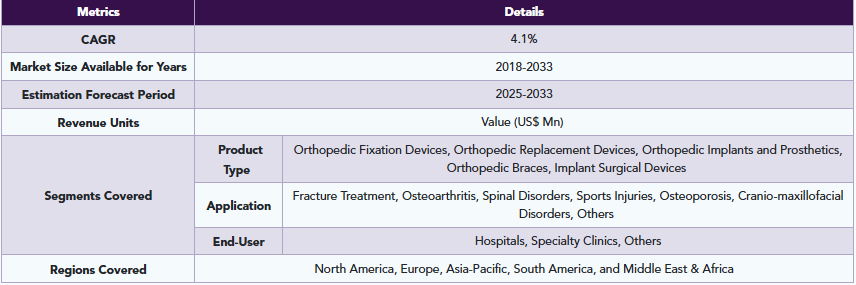 整形外科用医療機器の世界市場規模は2033年までにCAGR 4.1%で拡大する見通し