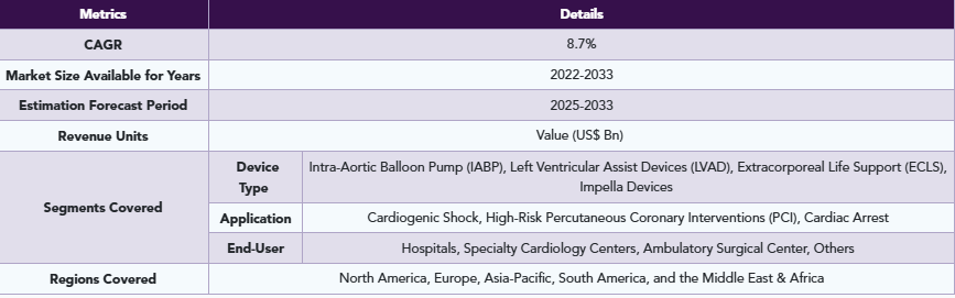 心血管疾患(CVD)は世界的な健康問題であり、世界中の疾病と死亡の主要な要因の一つです。高齢化、運動不足の生活様式、不健康な食習慣、肥満や糖尿病の増加により、急性心筋梗塞(心臓発作)や慢性心不全の発生率が上昇しています。急性心筋梗塞や慢性心不全を含む心臓関連疾患の増加傾向は、医療従事者が重要な医療処置中の患者転帰改善のために経皮的機械的循環補助(pMCS)デバイスを活用する原動力となっている。