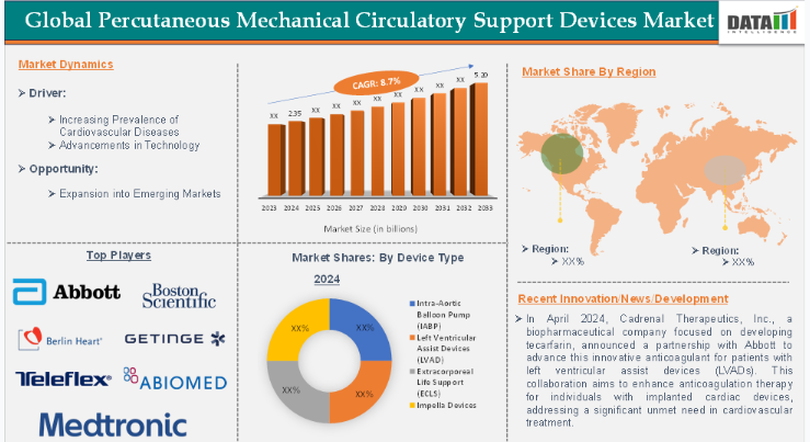 経皮的機械的循環補助装置市場における主要なグローバルプレーヤーには、Abbott、Berlin Heart、Medtronic、Teleflex Incorporated、Getinge、ABIOMED、Boston Scientific Corporation、LivaNova, Inc.、EUROSETS、Evaheart, Inc. などがあります。