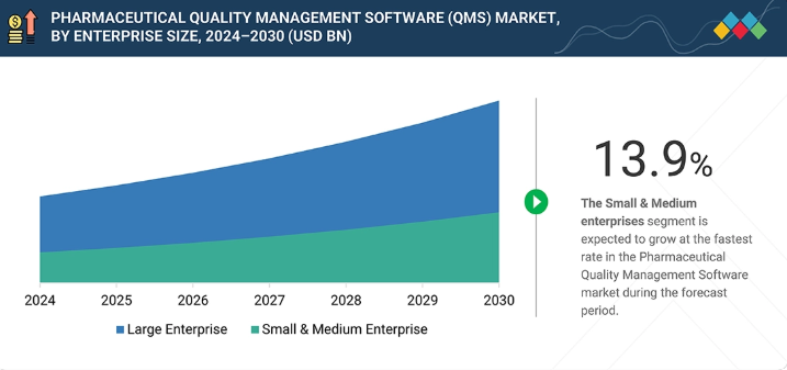 医薬品品質管理ソフトウェア市場、企業規模別(市場規模と2030年までの予測 – 価値ベース、百万米ドル)