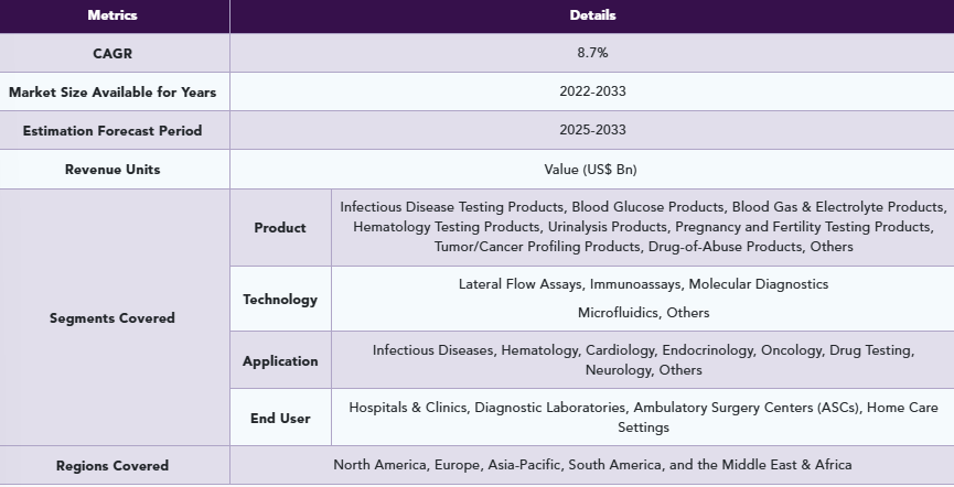 ポイントオブケア診断の世界市場規模は2033年までにCAGR 10.7%で拡大する見通し