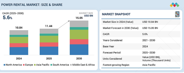 世界の電力レンタル市場規模は、予測期間中に年平均成長率(CAGR)5.6%で成長し、2025年の114億4000万米ドルから2030年には150億5000万米ドルに達すると予測されている。建設、イベント、石油・ガス、公益事業など様々な業界で一時的な電力ソリューションへの需要が増加しており、レンタル設備が柔軟性と費用対効果を提供していることが市場の牽引要因となっている。建設活動の増加に伴い、建設現場の照明や仮設施設の稼働など、電力レンタル設備の需要が高まっている。さらに、自然災害の頻発、停電、電力系統の不安定化により、バックアップ電源ソリューションの必要性が増しており、企業はレンタル会社が提供する非常用電源ソリューションへの投資を進めている。この要因も市場の成長を牽引している。