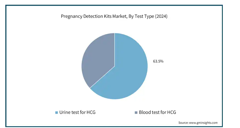 検査の種類別では、妊娠検査キット市場はHCG尿検査とHCG血液検査に区分されます。HCG尿検査は、2024年の売上シェアの63.5%を占め、市場の支配的なセグメントとして浮上し、2034年には18億米ドルに達する見込みです。