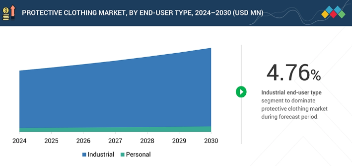 エンドユーザー別では、2024年に産業セグメントが防護服市場の最大シェアを占めた。