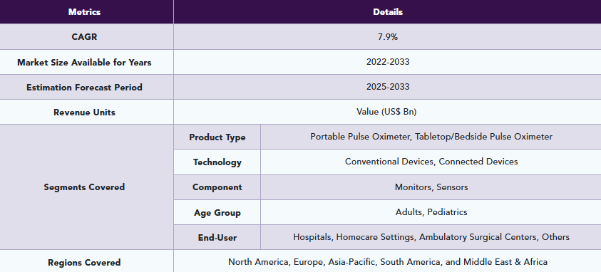 パルスオキシメータの世界市場規模は2033年までにCAGR7.9%で拡大する見通し