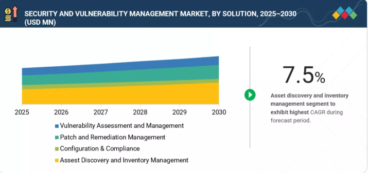 資産発見・インベントリ管理は最も成長が速いソリューション分野である。組織が接続された全デバイスとデジタル資産に対する包括的な可視性を求めるためだ。これらのソリューションは正確な資産インベントリの維持、シャドーITの特定、資産の重要度に基づく脆弱性の優先順位付けを支援する。